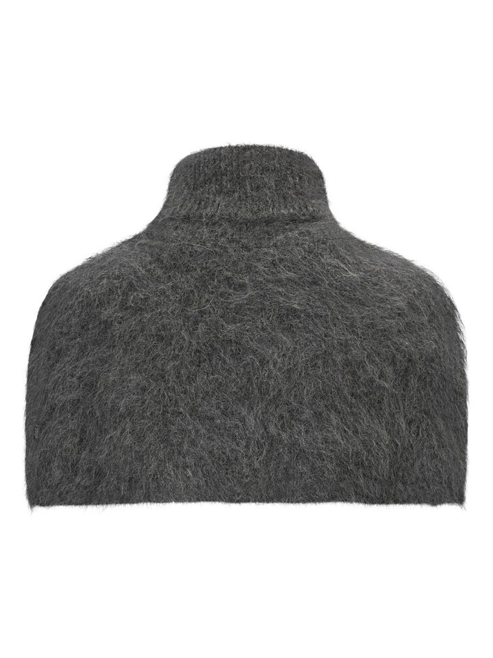 Chunky turtleneck accessory designed to drape over the shoulders. Ideal for layering—perfect to wear over sweaters, shirts, and even coats for added warmth and style.