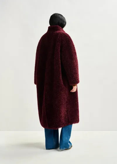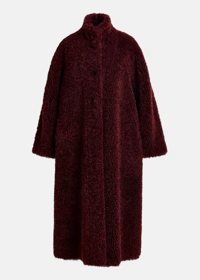 Faux shearling oversized fit coat finished with a suede backing for added structure. It has dropped shoulders ,a self-fabric stand-up collar and functional slanted pockets.