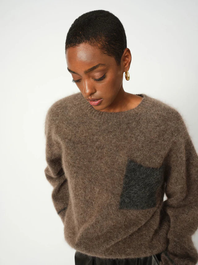 Classic O neck sweater in a soft, hairy texture, offering a relaxed and effortless fit. The contrast-coloured chest pocket brings a contemporary twist. Style it with denim or tailored trousers.