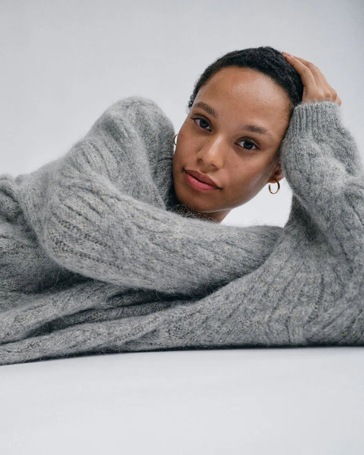 Soft V-neck knit in a regular fit crafted from a luxurious blend of alpaca, wool, mohair, and viscose for warmth and texture. Style it with tailored trousers or layer over a dress for an elegant cold-weather look.