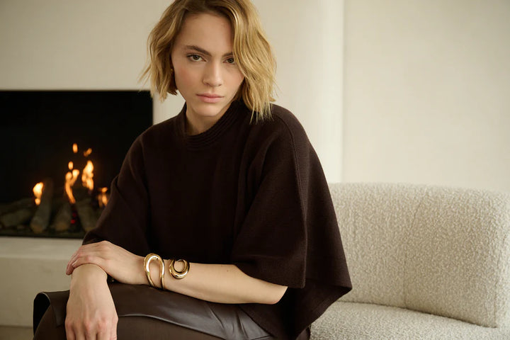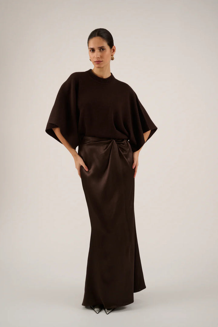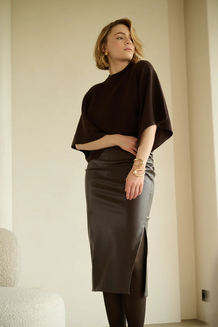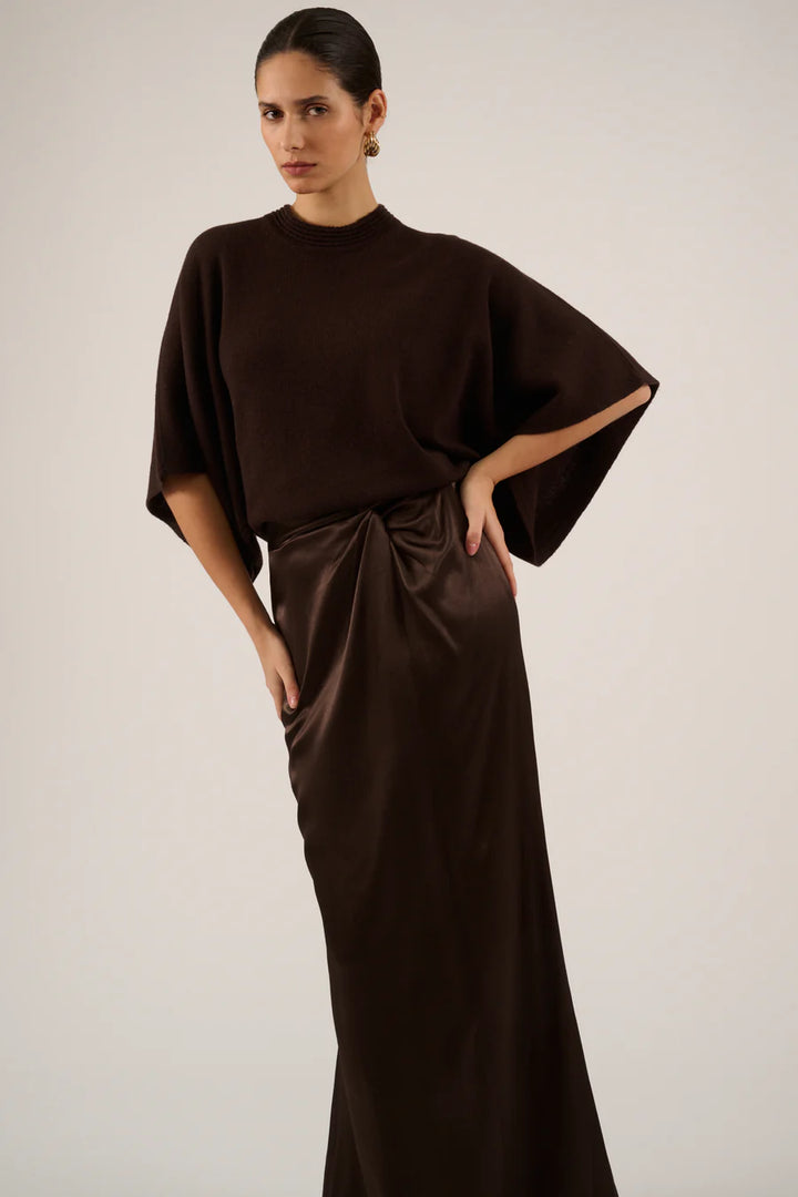 Pullover with bat wings, wide three quarter length sleeves and neck detail.
