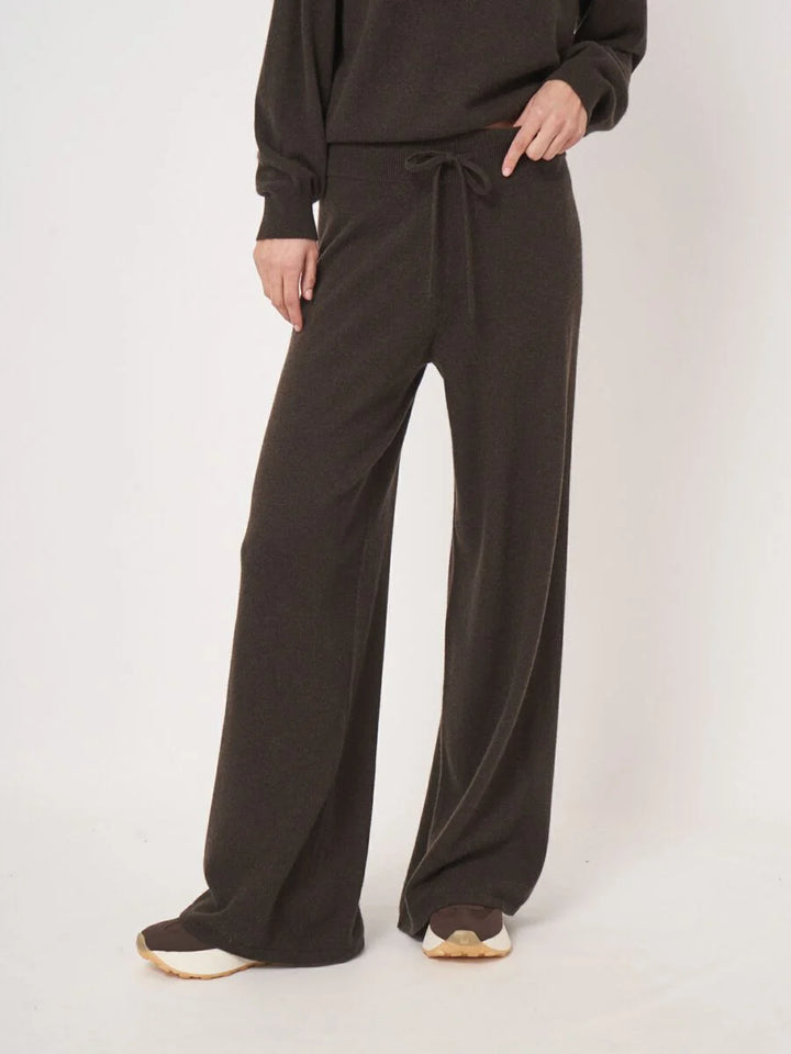 Fine knit straight leg fitted pants in organic cashmere. Combine with the matching sweater for a chic and comfortable look.