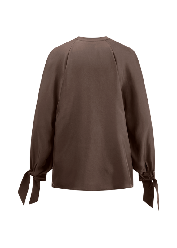 Long sleeved silk blouse with stylish bows on the cuffs. The high-quality silk fabric and loose fit ensure a wonderfully light feel. Wear under a jacket or on its own.
